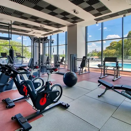 Departamento Lujoso 1 Dormitorio Cerca Del Shoping Del Sol van 58 m^2 ligt in Asuncion, binnen 6 km van de Museo Nacional de Bellas Artes, en geeft gasten een sauna. Dit appartement ligt niet ver van de Kerk van de Heilige Drie-eenheid en biedt een privézwembad.