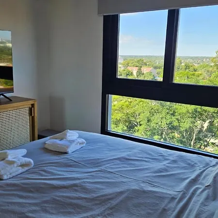 Departamento Lujoso 1 Dormitorio Cerca Del Shoping Del Sol heeft een balkon, voorzien van een flatscreen TV met satellietzenders, airconditioning voor een aangenamer verblijf. Het 1-badkamer appartement bestaat uit 1 slaapkamer. 1 badkamer wordt aangeboden aan gasten.